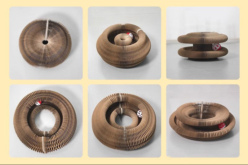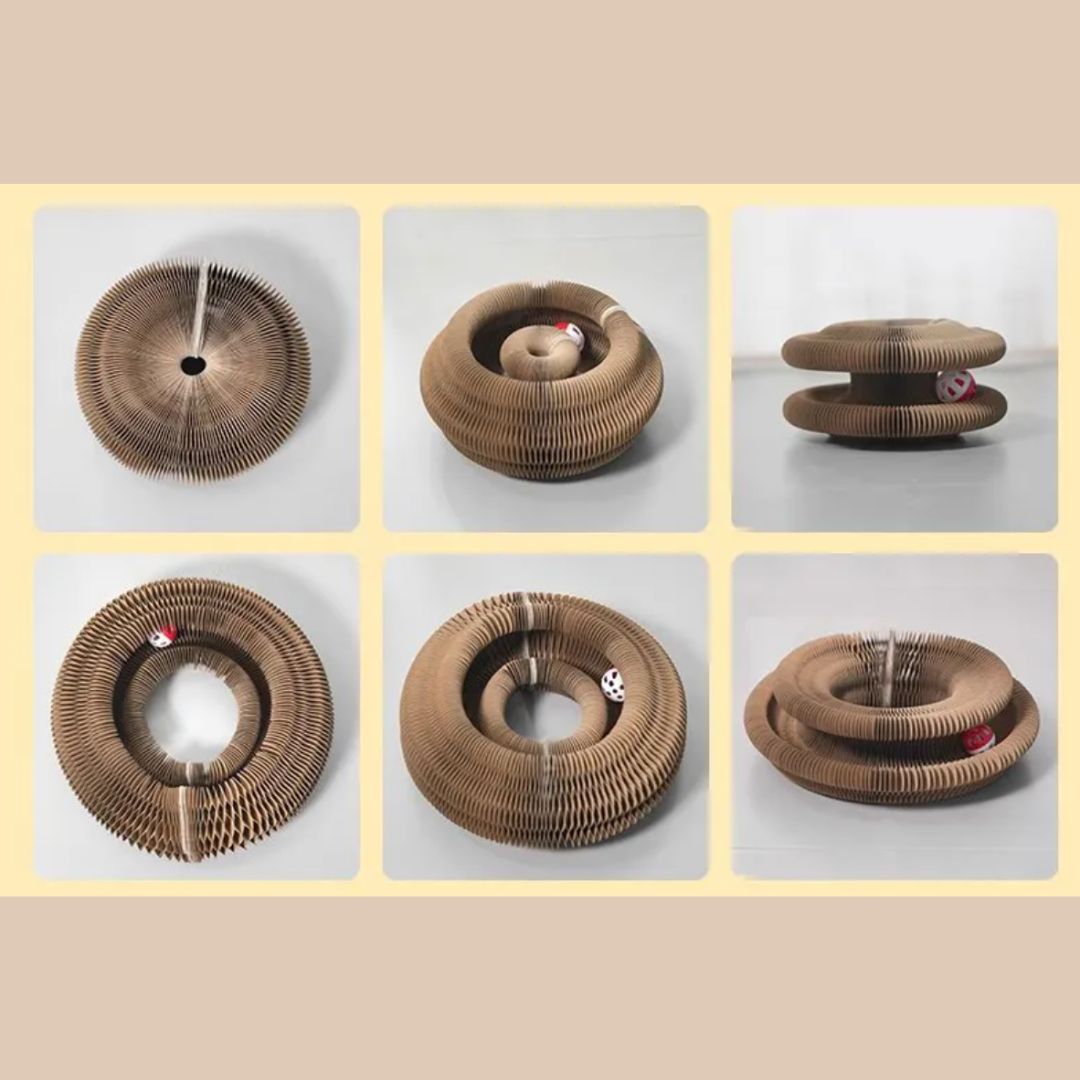 C’est à la fois un griffoir, un tunnel, un jouet à balle et un objet design qui s’intègre parfaitement dans votre intérieur.