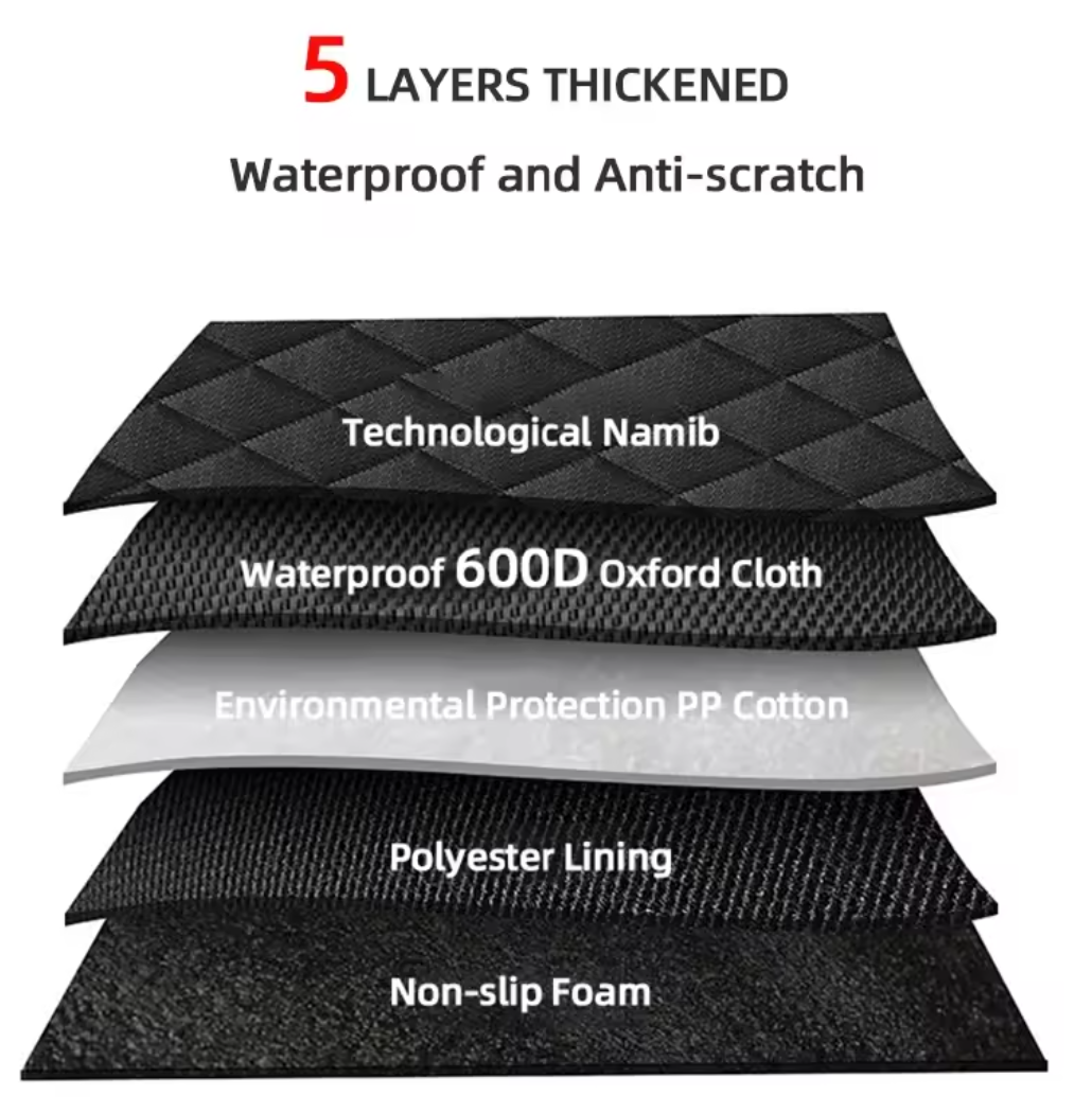 100 % étanche 💧 – Double couche Oxford 600D + TPU pour bloquer l’humidité et les accidents.